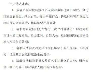 举报多级流转,上级部门何时亮剑?为了讨回公道,村民代表秦志全自2023年起持续实名举报。材料从村、镇、区、市一路辗转至自治区及中央有关部门,甚至通过国务院客户端和中央巡视组渠道反映。然而,大部分举报信最终均“流转”回临桂区或六塘镇本级处理,陷入“查无实据、久拖不决”的怪圈。截至发稿前,秦某仅在2024年底受到一次为期半年的政务警告处分,且处分未记入档案,并未影响其职务与收入。村民们表示,这一处理结果远不足以平息民愤。他们已将最新材料递交至临桂区信访局,静待官方答复。基层干部本应是为民服务的“勤务员”,而非作威作福的“土皇帝”。诚桂村的案例,暴露出基层治理中可能存在的监管真空与打击报复乱象。此事不仅关乎一笔修路款、一次选举的公平,更关乎基层群众对法治政F的信任。我们将持续关注此事进展,呼吁上级有关部门打破地方保护主义,依法依规介入调查,还诚桂村一片清朗天空,保护举报人的合法权益。
